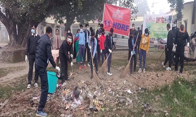 गोरखपुर। क्षेत्रीय प्रत्युत्तर केंद्र एनडीआरएफ द्वारा आज जनता इंटर कॉलेज में स्वच्छता अभियान चलाया गया। एनडीआरएफ के कमांडेंट मनोज शर्मा के निर्देशन और आरआरसी गोरखपुर के उप कमांडेंट प्रेम कुमार पासवान के नेतृत्व में इंस्पेक्टर सुधीर कुमार और टीम ने लोगों को स्वच्छता के प्रति जागरूक किया।