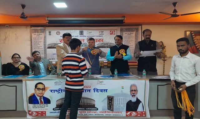 गाजियाबाद। नेहरू युवा केन्द्र गाजियाबाद के तत्वावधान में शम्भू दयाल डिग्री कालेज में राष्ट्रीय संविधान दिवस कार्यक्रम का आयोजन किया गया। मुख्य अतिथि राज्यसभा सांसद डॉ अनिल अग्रवाल ने युवाओं को सम्बोधित करते हुए कहा कि हमारे देश का संविधान इतना उत्कृष्ट है कि एक गरीब मजदूर और किसान का बच्चा भी देश के सर्वोच्च पद राष्ट्रपति, प्रधानमंत्री और मुख्यमंत्री के पद तक पहुँच सकता है। उन्होंने कहा कि भारत दुनियाँ का सबसे सशक्त लोकतांत्रिक देश है।