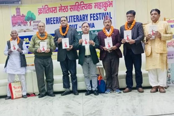 मेरठ। क्रांतिधरा साहित्य अकादमी एवं हिंदी विभाग, मेरठ विश्वविद्यालय द्वारा आयोजित छठे मेरठ लिट्रेचर फ़ेस्टिवल के तीसरे दिन ग़ाज़ियाबाद के कवि प्रवीण कुमार के कविता संग्रह ‘नियंता नहीं हो तुम’ का विमोचन किया गया। सत्र की अध्यक्षता कर रहे सुप्रसिद्ध गीतकार डॉ धनंजय सिंह ने कहा कि कवि प्रवीण कुमार प्रकृति के उपासक कवि हैं। वह कुदरत की व्यवस्था में मानवीय हस्तक्षेप को अनुचित मानते हैं। कविता संग्रह की शीर्षक कविता में वह मानव जाति को स्पष्ट रूप से संदेश देते हैं कि वह स्वयं को इस जगत का नियंता न समझे। पृथ्वी पर मौजूद अन्य जीवों- वनस्पतियों की तरह वह भी एक जीव मात्र है। वह न इस ब्रह्मांड की व्यवस्था का और न ही जीव जगत का नियंत्रक है।