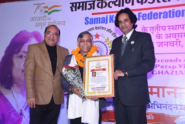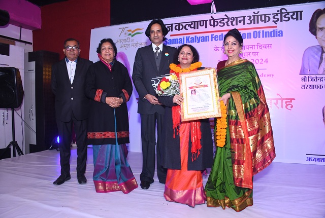 गाजियाबाद। राष्ट्र को समर्पित संस्था ‘समाज कल्याण फेडरेशन ऑफ इंडिया’ ने 75वें गणतंत्र दिवस के उपलक्ष्य एवं अपने तृतीय स्थापना दिवस के अवसर पर 9 राज्यों की 41 प्रतिभाओं को ‘राष्ट्रीय प्रतिभा सम्मान’ से नवाजा है। एसकेएफआई के राष्ट्रीय अध्यक्ष व वरिष्ठ पत्रकार ‘भारत गौरव’ जितेन्द्र बच्चन ने रविवार, 21 जनवरी को आयोजित सम्मान समारोह को संबोधित करते हुए कहा कि आज उन प्रतिभाओं का सम्मान किया गया है जो देश के अलग-अलग राज्यों के विकास में चुपचाप अपनी भागीदारी निभा रहे हैं। इनके हुनर से संपूर्ण राष्ट्र सशक्त हो रहा है। इस सम्मान से वे अब और प्रोत्साहित होंगे और समाज को एक प्रगतिशील दिशा मिलेगी।