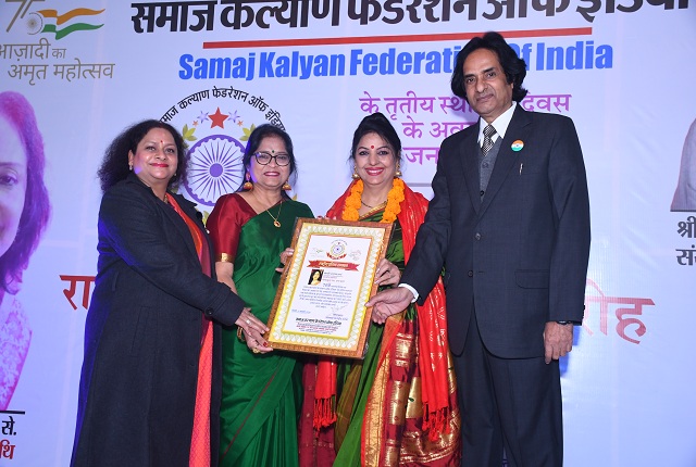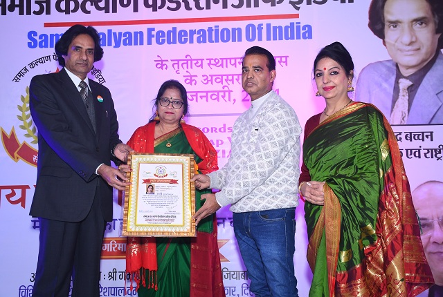 संस्था के राष्ट्रीय निदेशक विजय कुमार श्रीवास्तव ने बताया कि समाज कल्याण फेडरेशन ऑफ इंडिया (एसकेएफआई) के सदस्य देश के 11 राज्यों में अपने-अपने स्तर से संस्था को विस्तार दे रहे हैं। संस्था के मुख्य उद्देश्य की पूर्ति के लिए जिला स्तर पर इकाई गठित की जा रही है। उन्होंने बताया कि एसकेएफआई के तृतीय स्थापना दिवस पर आयोजित राष्ट्रीय सम्मान समारोह में नौ प्रदेशों की 41 प्रतिभाओं को चार कटेगरी में राष्ट्रीय प्रतिभा सम्मान, साहित्य गौरव, समाज गौरव और पत्रकार भूषण सम्मान से नवाजा गया है। इससे पहले समारोह के अतिथियों का स्वागत-सत्कार किया गया। तत्पश्चात राजस्थान, महाराष्ट्र, उत्तर प्रदेश, मध्य प्रदेश, दिल्ली, उत्तराखंड, हरियाणा, बिहार और झारखंड से आए शिक्षा, नृत्य, साहित्य, संगीत, स्वास्थ्य, पर्यावरण, पुलिस एवं पत्रकारिता से जुड़ी शख्सियतों को पुष्प गुच्छ, शॉल, स्मृति चिन्ह व प्रशस्ति पत्र देकर सम्मानित किया गया।
